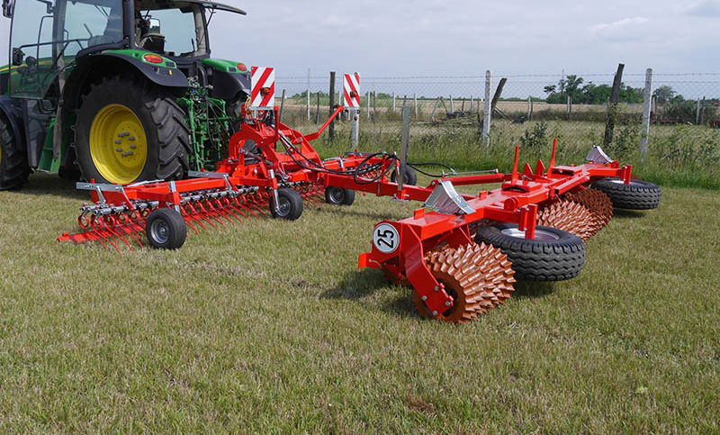 Diamètre 45/50cm. En option, barre niveleuse FlatSpring. Repliage vertical hydraulique des outils, puis repliage mécanique des roues pour le transport.